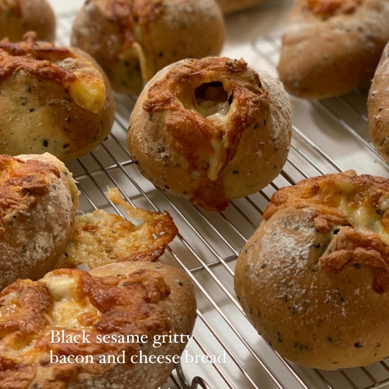 【 レッスン 】ゴロゴロベーコン&チーズの黒ゴマパン