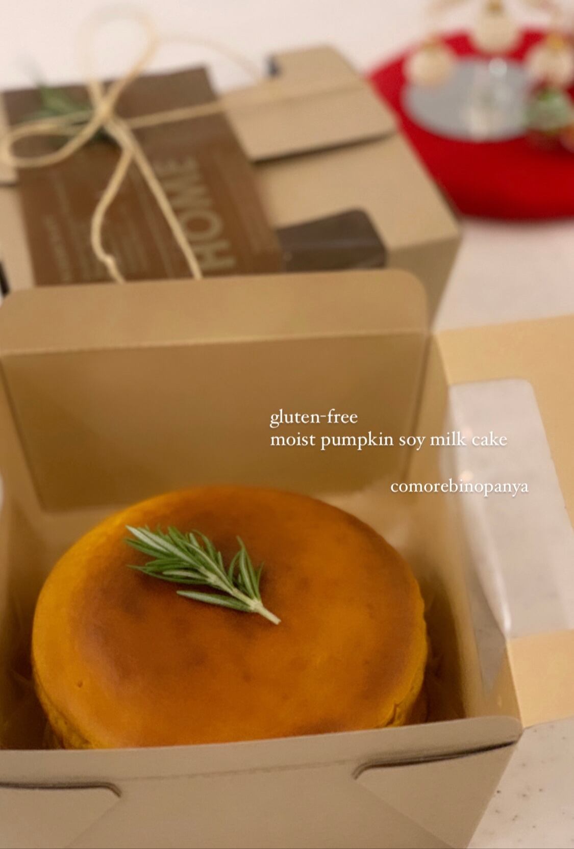 グルテンフリー。豆乳で仕上げたしっとりとした食感が特徴で、濃厚な甘さのかぼちゃケーキ。